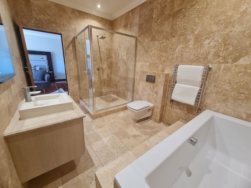 The suite is furnished with a double bed and the en-suite bathroom has a bath and shower. The room is equipped with Wi-Fi connection, tea and coffee making facilities, TV with Netflix as well as a patio with a Heads and Lagoon view.