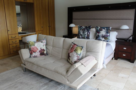 Situated on the groundfloor of the Castle, this spacious room commands magnificent views of the Knysna Lagoon. Double doors open onto an open patio where guests may enjoy a continental breakfast served by prior arrangement. With views of the west Head in the distance, this spot is hard to beat.